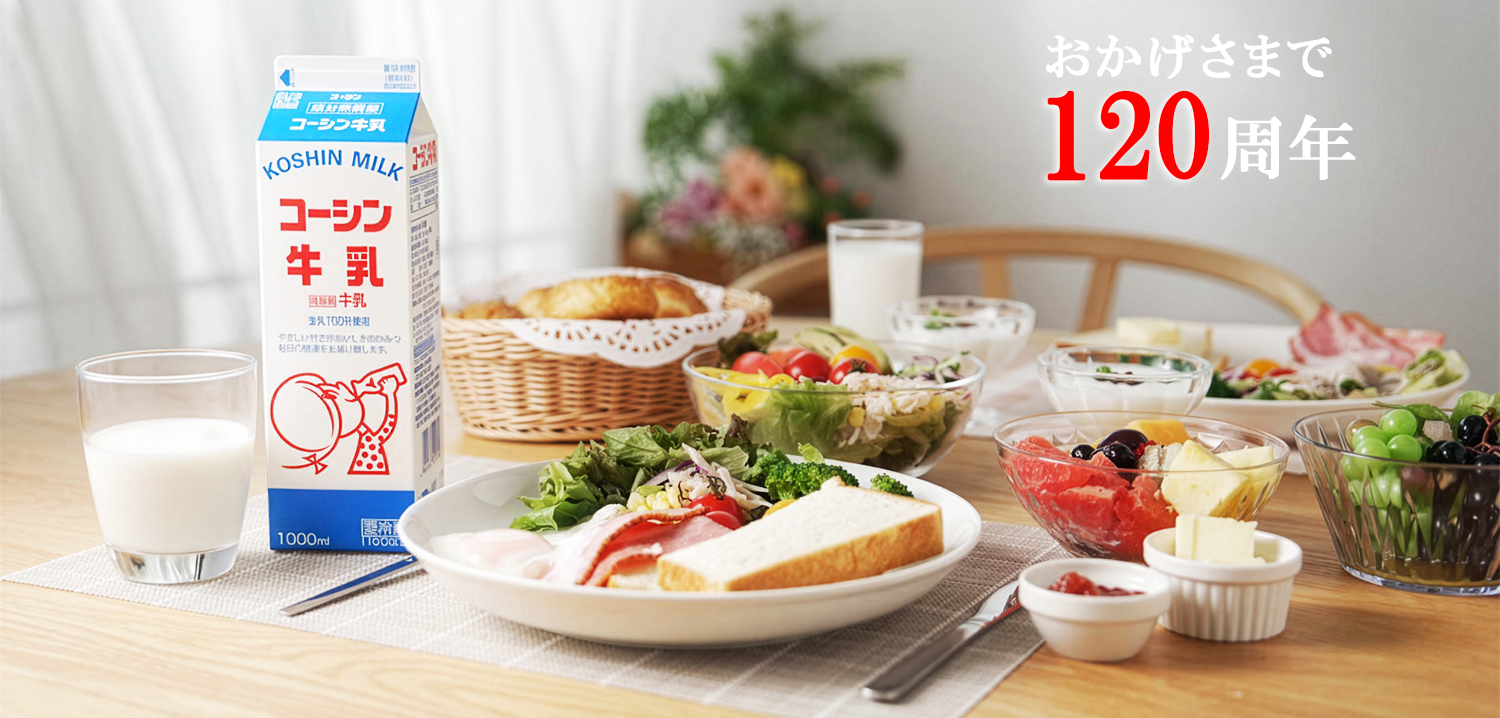 コーシン乳業は2026年で創業120周年です。これからも牛乳を中心とした高品質でおいしい食品を毎日確実にお客様へお届けします。